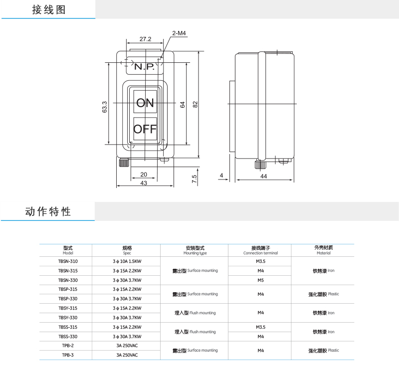 • TBSP-315 露出型塑料压扣开关(M3.5)