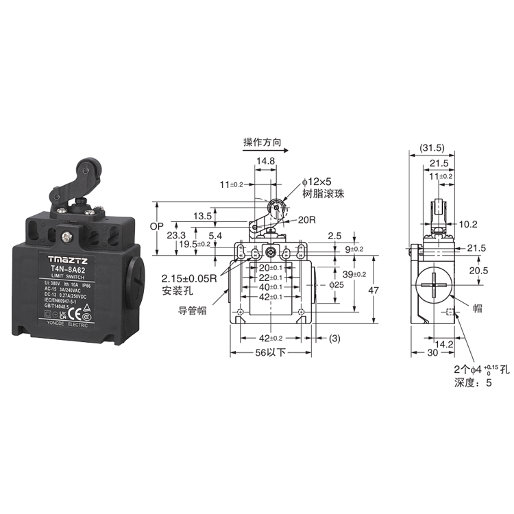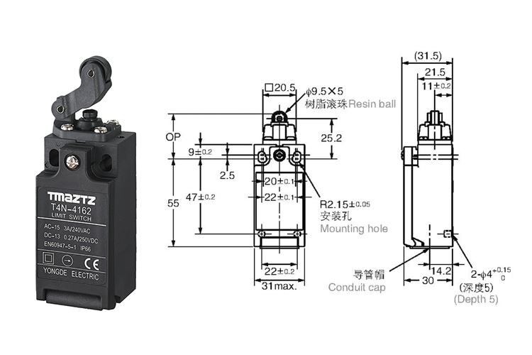 内藏接点座具有速动型: 1NC/1NO、2NC;慢动型: 1NC/1NO、2NC