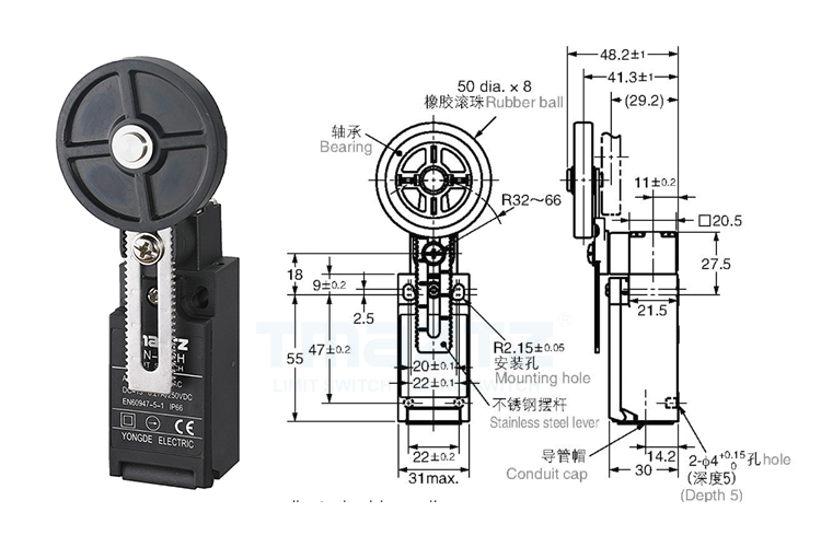 • T4N-4122 尼龙轮摆臂限位开关