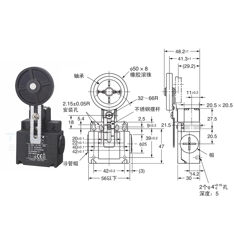 T4N-412H 可调皮轮限位开关