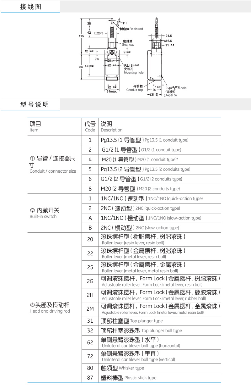 ●内藏接点座具有速动型: 1NC/1NO、2NC;慢动型: 1NC/1NO、2NC、2NC+1NO、3NC