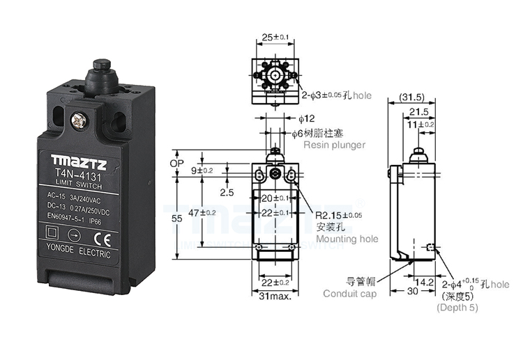 内藏接点座具有速动型: 1NC/1NO、2NC;慢动型: 1NC/1NO、2NC、2NC+1NC和3NC