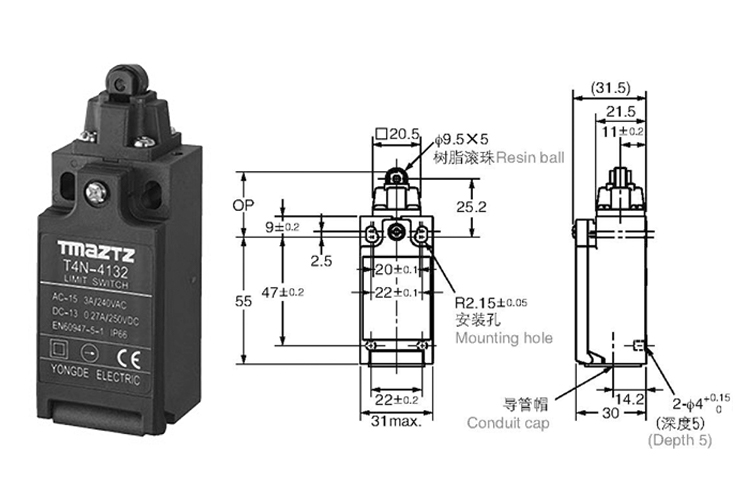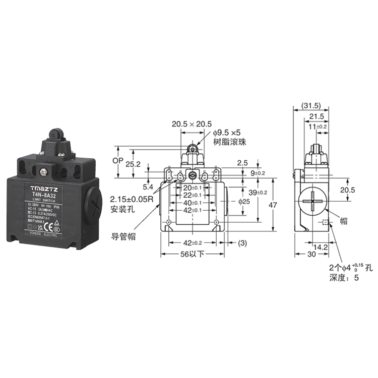 ●内藏接点座具有速动型: 1NC/1NO、2NC;慢动型: 1NC/1NO、2NC、2NC+1NO、3NC