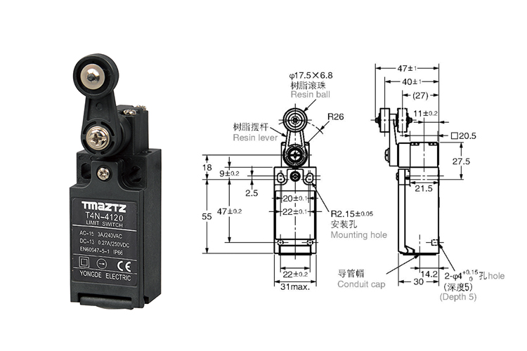 • T4N-4122 尼龙轮摆臂限位开关
