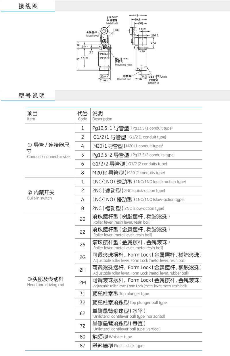●内藏接点座具有速动型: 1NC/1NO、2NC;慢动型: 1NC/1NO、2NC、2NC+1NO、3NC