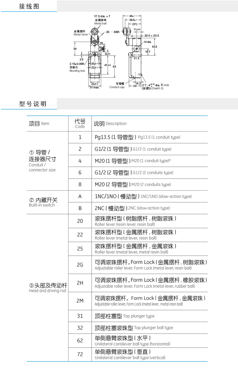 接点形式1NC/1NO及2NC(仅限慢动型)。