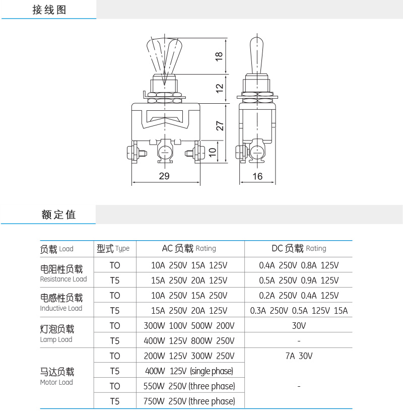 • T513A T5R13A ON-OFF-ON 3端子型钮子开关