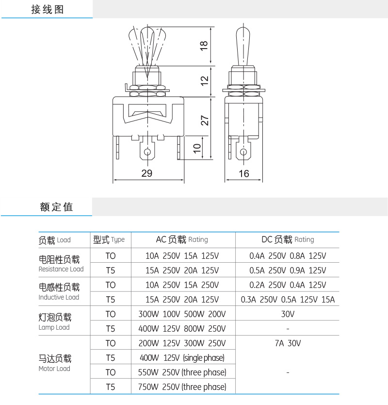 • T513A T5R13A ON-OFF-ON 3端子型钮子开关