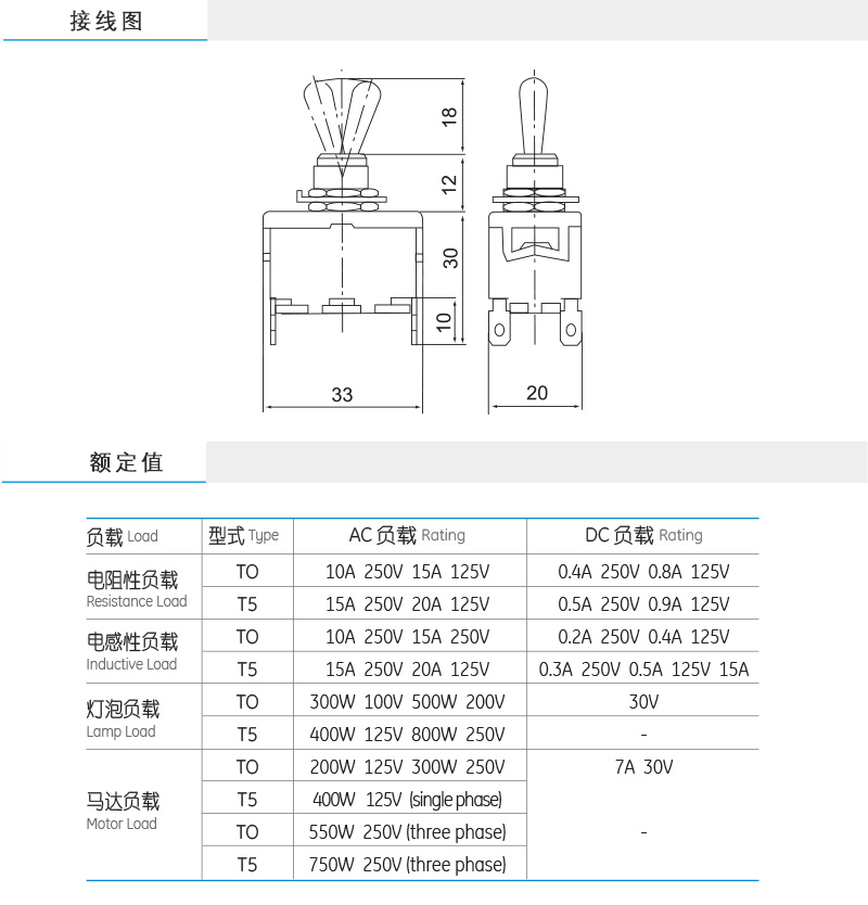 • T513A T5R13A ON-OFF-ON 3端子型钮子开关
