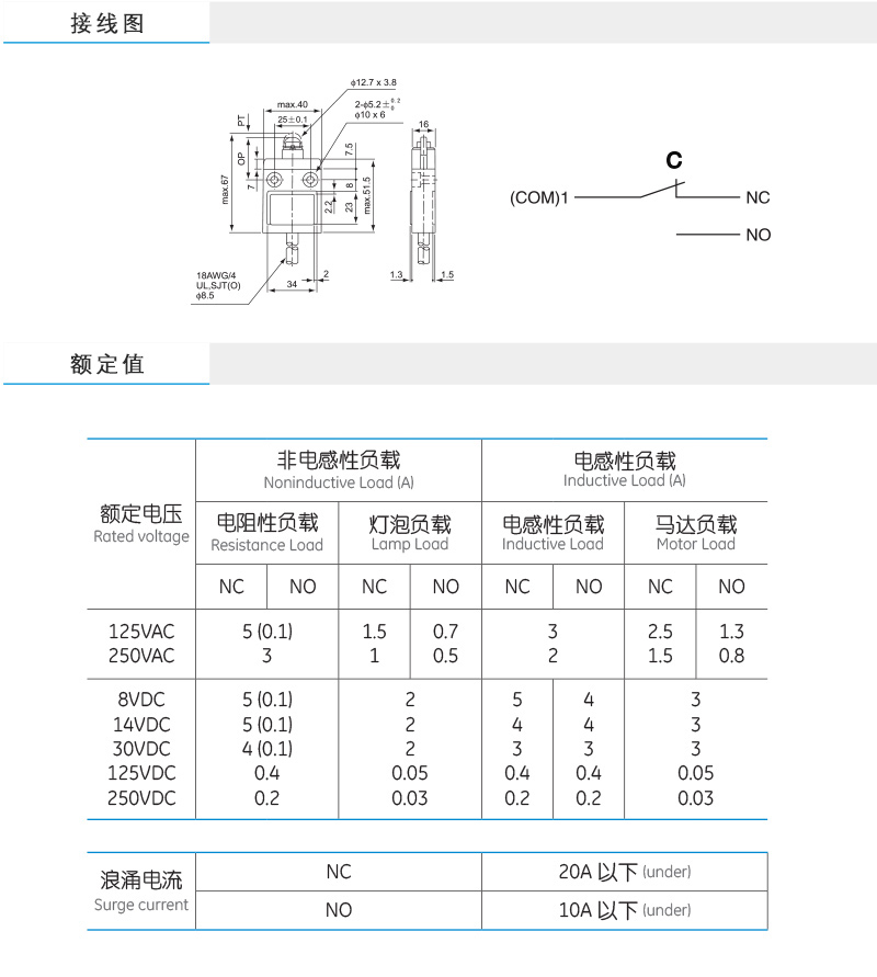 我们的开关分为柱塞型,摆杆型和弹簧型,出厂线长为3M (因测量原因,可能会有些许误差,以产品实际为准)。线长当然可以定制,但TMAZTZ系列的TZ-3产品需要冻胶,所以请至少提前1周与销售人员联系。