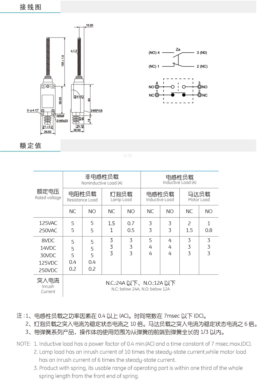 保护构造IP65头部为通用弹簧杆