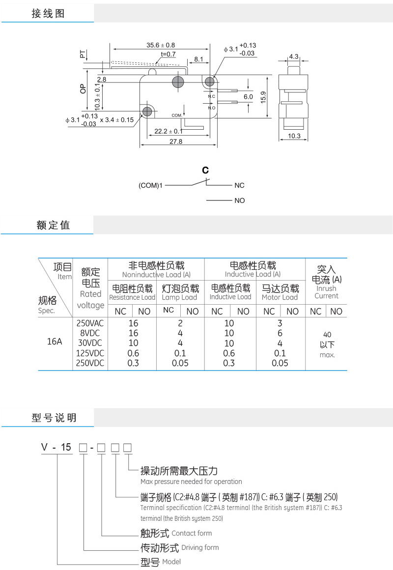 高强度外壳,安装开关时,塑料外壳能承受6kgf.cm的扭矩而不会破裂。