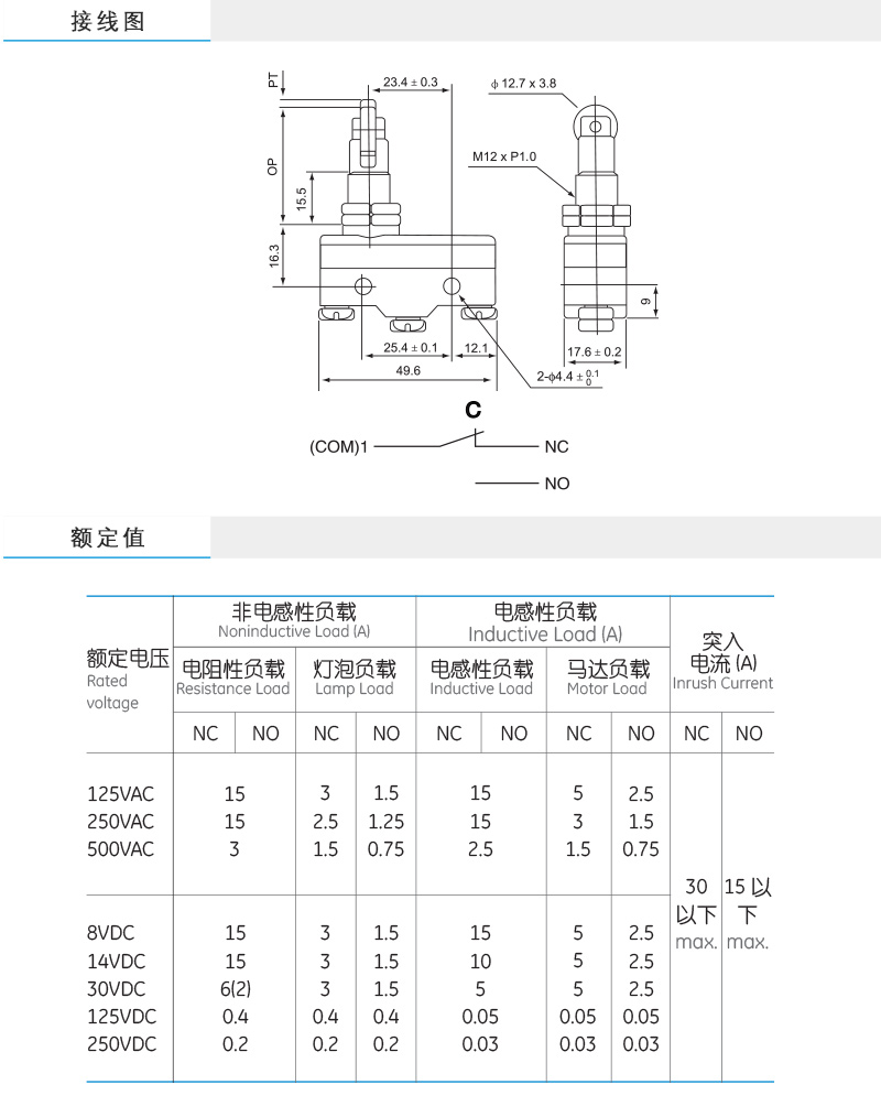 ●采用银复合触点,约定发热电流达15A。