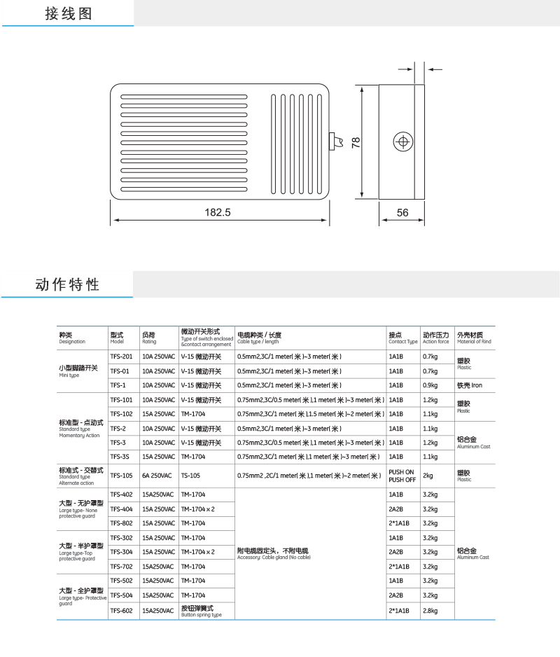 较之TFS-1铸铁脚踏开关,拥有相同16A电气参数与线长的脚踏开关,